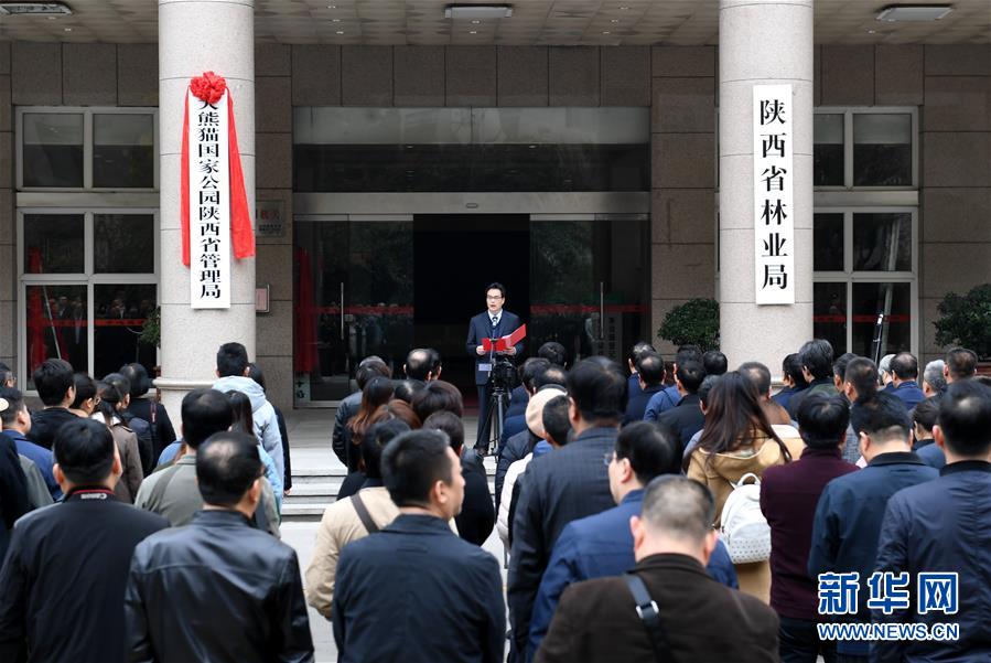11月11日,大熊猫国家公园陕西省管理局在西安正式挂牌成立。 当日,大熊猫国家公园陕西省管理局在西安正式挂牌,并向大熊猫国家公园太白山、长青、佛坪、周至、宁太管理分局授牌,标志着陕西省大熊猫国家公园体制试点工作进入全新阶段。大熊猫国家公园陕西秦岭区总面积43.86万公顷,囊括了秦岭70%以上的大熊猫栖息地,区域涉及西安、宝鸡、汉中、安康4市8县的19个乡镇,分布大熊猫298只。 新华社记者 李一博 摄
