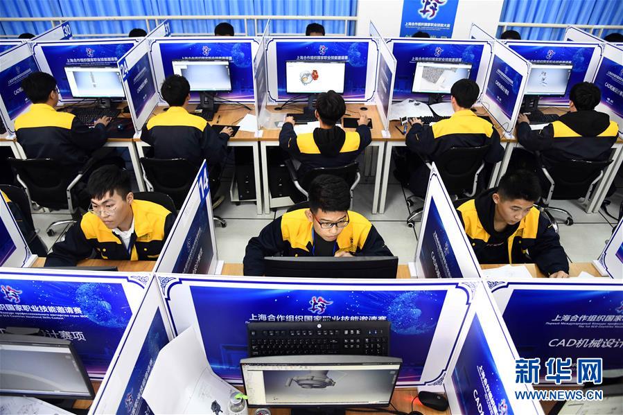 11月11日,选手们在进行CAD机械设计项目竞赛。 新华社记者 郭绪雷 摄