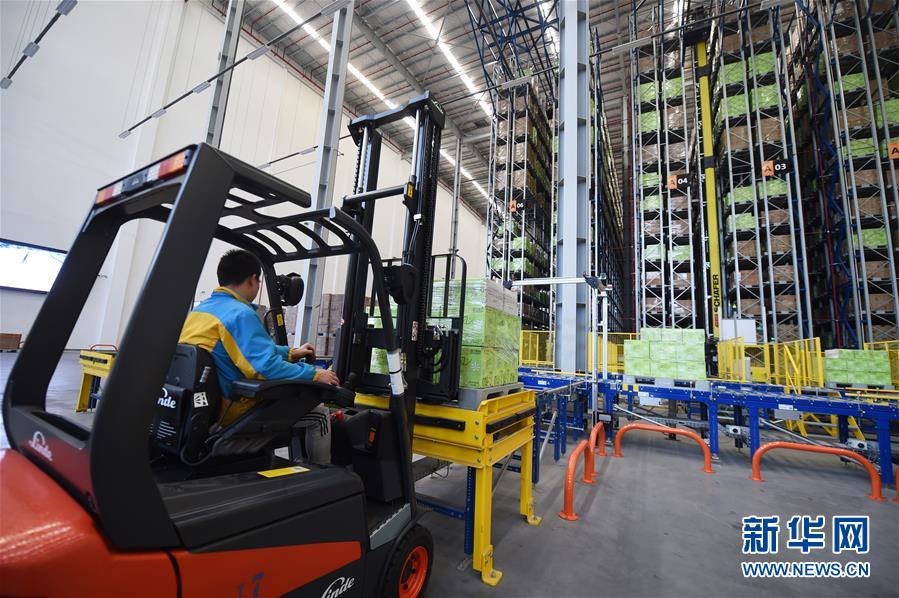 工作人员在南京市雨花经济开发区一家智慧物流基地内忙碌(2016年11月3日摄)。