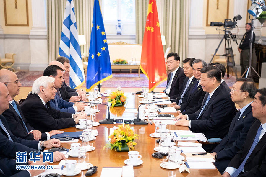 当地时间11月11日,国家主席习近平在雅典同希腊总统帕夫洛普洛斯会谈。 新华社记者 李学仁 摄