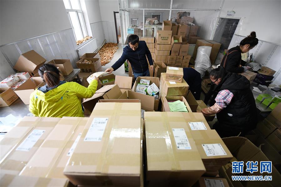 11月11日,在悦来颐和食用菌种植专业合作社,工人在给“双十一”售出的产品进行包装。 新华社记者 王建威 摄
