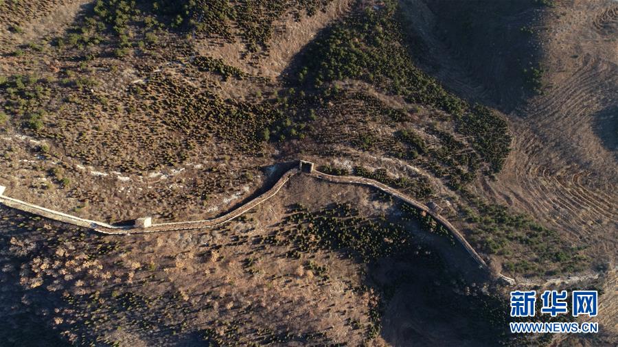 这是11月11日使用无人机拍摄的河北省唐山市迁安境内的白羊峪长城。 初冬时节,在河北省唐山市北部山区,巍峨的长城与连绵的山岭相映衬,勾勒出雄伟的景色。 新华社记者 牟宇 摄