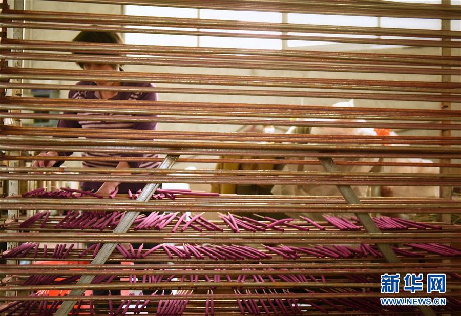 11月13日,在福建省永春县达埔镇的一家制香公司,工人将电气化设备制好的香放入电烤架。 福建省永春县达埔镇是全国主要篾香生产基地之一,近年来,该县积极推进传统制香工艺电气化,传统企业联合供电部门共同参与电气化制香机械的研发和升级,在补贴等用电优惠政策下,一大批企业在坚持用传统工艺制作日用香的同时,依托电气化设备生产稳定的优点,推出了更多适应市场需求的高端香制品,一些有着驱蚊、养生功能的香制品畅销日本和东南亚市场。 新华社记者 张新晶 摄