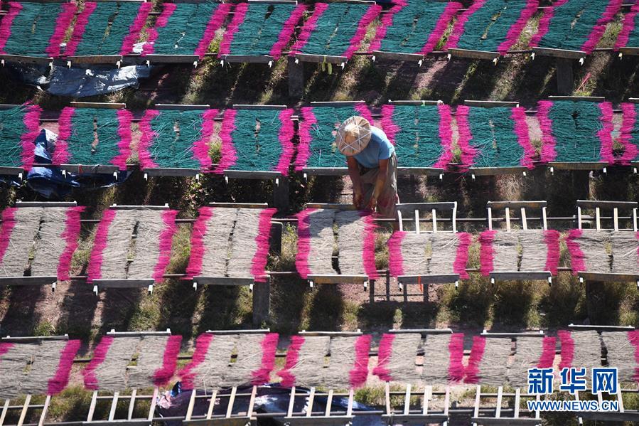 11月13日,工人在福建省永春县达埔镇的一家制香公司晒香。 福建省永春县达埔镇是全国主要篾香生产基地之一,近年来,该县积极推进传统制香工艺电气化,传统企业联合供电部门共同参与电气化制香机械的研发和升级,在补贴等用电优惠政策下,一大批企业在坚持用传统工艺制作日用香的同时,依托电气化设备生产稳定的优点,推出了更多适应市场需求的高端香制品,一些有着驱蚊、养生功能的香制品畅销日本和东南亚市场。 新华社记者 宋为伟 摄