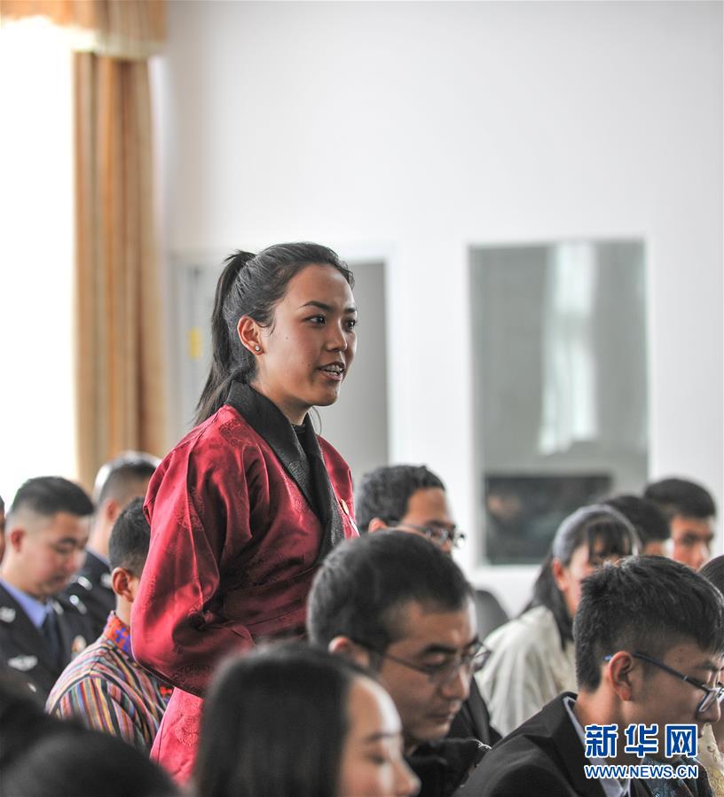 西藏大学学生代表就大学生就业问题向中央宣讲团成员、民政部副部长詹成付提问(11月13日摄)。 新华社记者 晋美多吉 摄