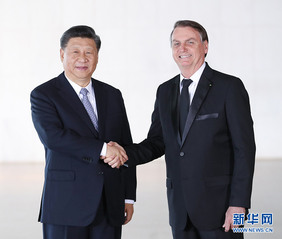 当地时间11月13日,国家主席习近平在巴西利亚同巴西总统博索纳罗会谈。 新华社记者 丁海涛 摄