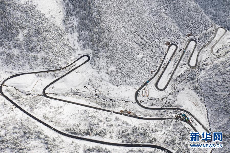 这是318国道剪子弯山段,大雪过后银装素裹(10月17日无人机拍摄)。 全长2000多公里的川藏公路,从成都开始,一路向西到终点拉萨,在横断山脉、喜马拉雅山脉和念青唐古拉山脉间蜿蜒盘旋,因海拔落差大,弯道众多,形成天路奇观。 川藏公路1954年12月25日通车,65年来,国家对川藏公路进行了大规模改造升级,建设了众多桥梁和隧道,行车条件得到明显改善。 新华社记者 江宏景 摄