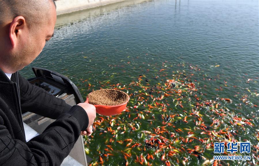 11月14日,镇平县长彦观赏鱼养殖有限公司的员工在投放饲料。 近年来,河南省镇平县侯集镇依托传统养殖业优势,大力发展观赏鱼经济,探索出“产业园+电商+农户”的发展模式,打造出一条完整的产业链。目前,侯集镇年产观赏鱼5亿多尾,活体观赏鱼商品通过电商渠道销往国内各大市场。小锦鲤“游”出的大产业积极带动了当地经济发展,助力当地群众增收。 新华社记者 李嘉南 摄