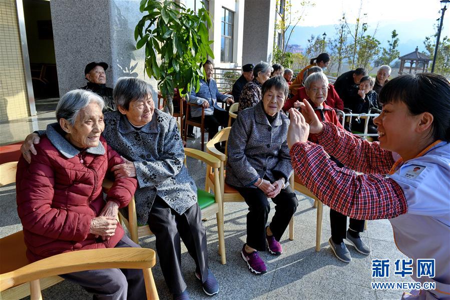 11月15日,在建瓯颐养中心,工作人员为老人拍照。 新华社记者张国俊摄