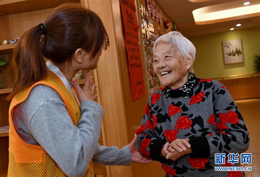 11月14日,在建瓯颐养中心,工作人员向80岁的徐根俤老人征求服务意见。 新华社记者张国俊摄