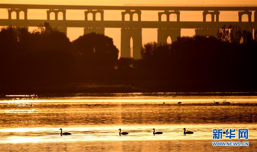 白天鹅在三门峡天鹅湖国家城市湿地公园内栖息(11月14日摄)。 初冬时节,大批白天鹅从西伯利亚南迁,来到河南省三门峡市黄河湿地栖息越冬。近年来,随着生态环境好转以及黄河水质的改善,来这里越冬的白天鹅数量逐年增多。 新华社发(郝源 摄)