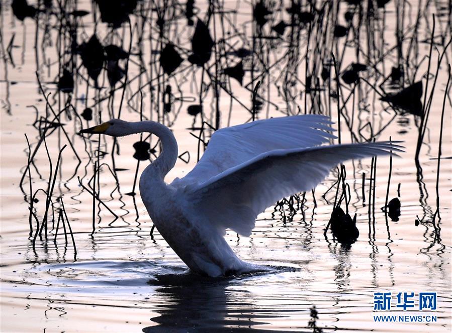 白天鹅在三门峡天鹅湖国家城市湿地公园嬉戏(11月14日摄)。 初冬时节,大批白天鹅从西伯利亚南迁,来到河南省三门峡市黄河湿地栖息越冬。近年来,随着生态环境好转以及黄河水质的改善,来这里越冬的白天鹅数量逐年增多。 新华社记者 李安 摄