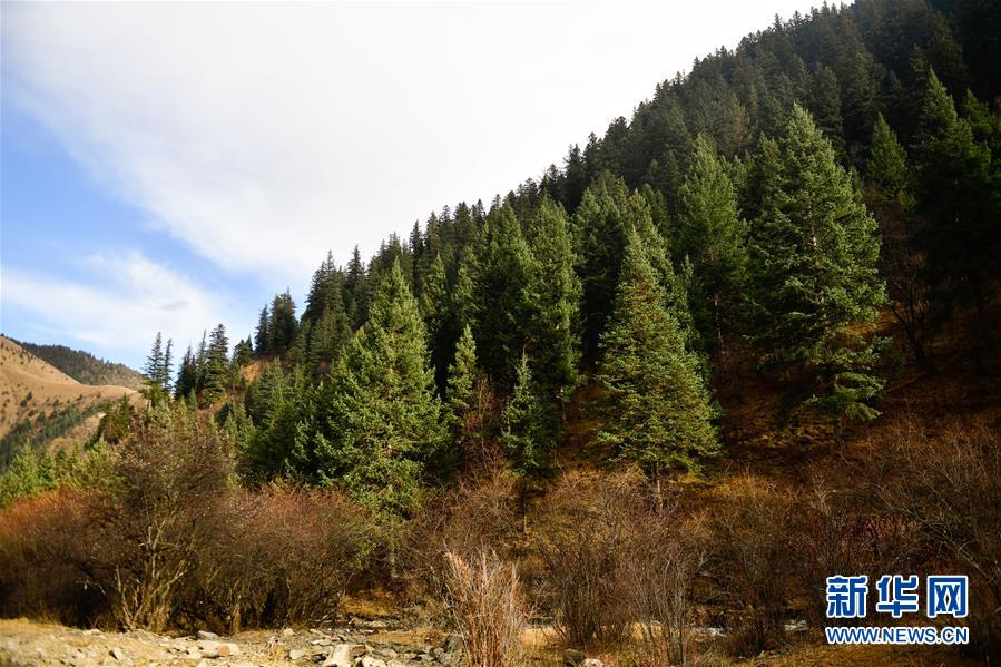 这是11月12日拍摄的玛可河林场一角。 新华社记者张龙摄