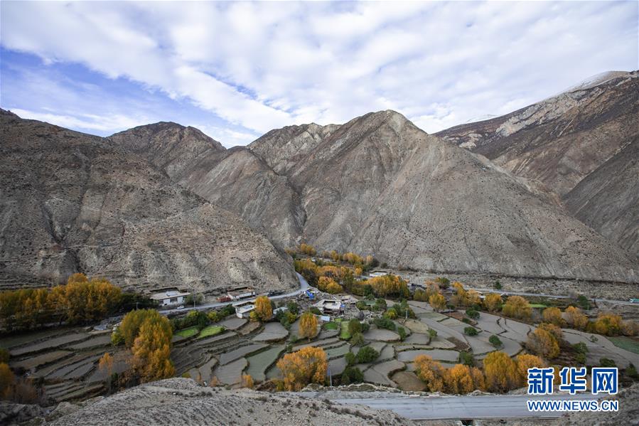 318国道西藏八宿县72拐边的同尼村(10月23日摄)。 川藏公路又称川藏线,全长2000多公里,从成都到拉萨包括北线317国道主要路段、南线318国道部分路段。全线海拔落差大,沿途分布着众多冰川、草原、峡谷、河流、湖泊、温泉、森林、村寨等原生态自然景观和丰富多彩的人文景观,被誉为“中国最美景观大道”。 新华社记者 江宏景 摄