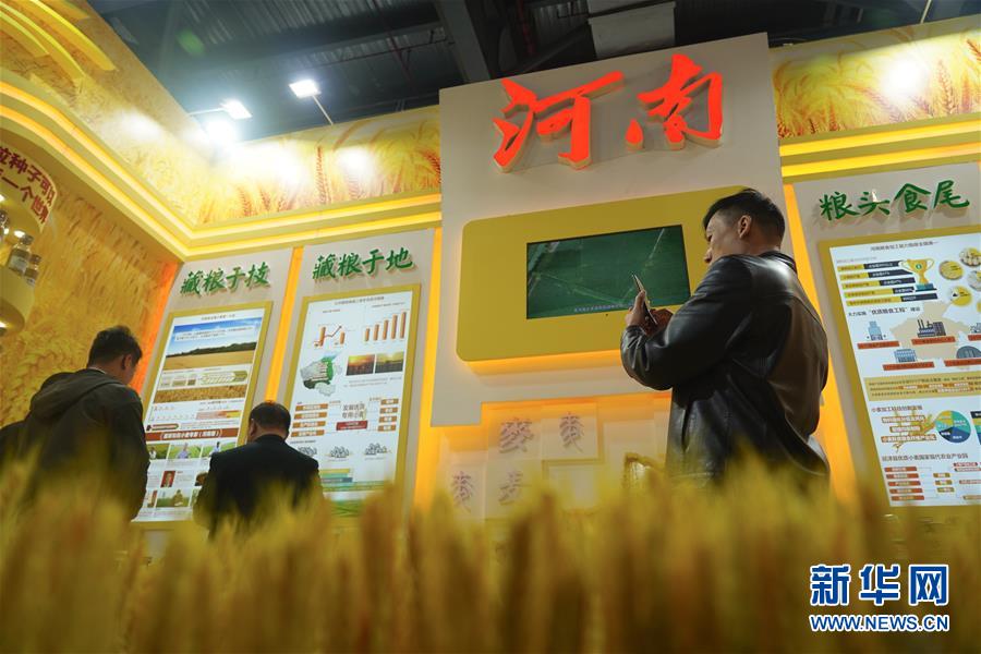 11月15日,观众在第十七届中国国际农产品交易会河南展区参观。 当日,第十七届中国国际农产品交易会在江西省南昌绿地国际博览中心拉开帷幕。本届农交会展览展示面积约13万平方米,设有专业展区18个,参展企业8000家。 新华社记者周密摄