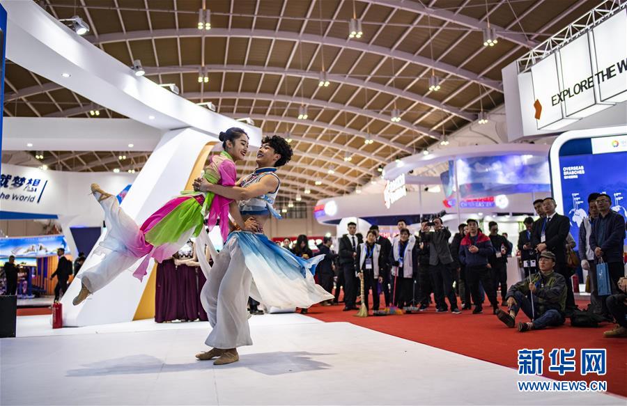 11月15日,舞蹈演员在交易会现场表演舞蹈《小河淌水》。 当日,由文化和旅游部、中国民用航空局、云南省人民政府共同主办的2019中国国际旅游交易会在云南昆明举行,吸引75个国家及地区参展。此次交易会设在昆明滇池国际会展中心,展区面积达9万平方米,展位总数3866个。 中国国际旅游交易会创办于1998年,现在已发展成为亚太地区规模最大、影响最广泛的专业旅游展会之一。 新华社记者 江文耀 摄