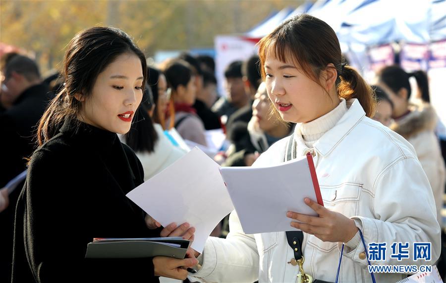 11月15日,求职者(右)在就业交流会上递交简历。 11月15日,第四届京津石区域(石家庄)高校毕业生就业交流会在位于石家庄市的河北科技大学内举办,此次招聘会有近千家用人单位参与,提供就业岗位1.9万余个。 新华社记者 王晓 摄