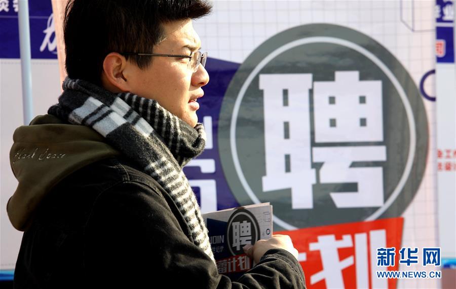 一位求职者在就业交流会上(11月15日摄)。 11月15日,第四届京津石区域(石家庄)高校毕业生就业交流会在位于石家庄市的河北科技大学内举办,此次招聘会有近千家用人单位参与,提供就业岗位1.9万余个。 新华社记者 王晓 摄