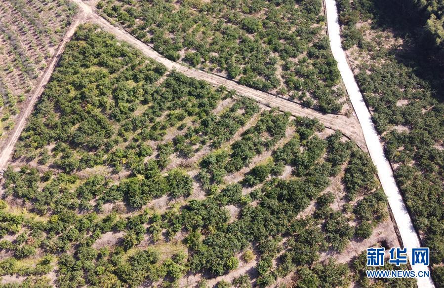 这是11月15日无人机拍摄的新干县神政桥乡桥头村柑橘基地。 近年来,为助力脱贫攻坚,江西省吉安市新干县因地制宜,发展特色农业。通过政府扶持、企业投入、贫困户入股的形式,建设罗汉果、柑橘、油茶等特色产业基地,有效拓宽贫困户增收渠道,带动贫困户增收脱贫。 新华社记者 张浩波 摄