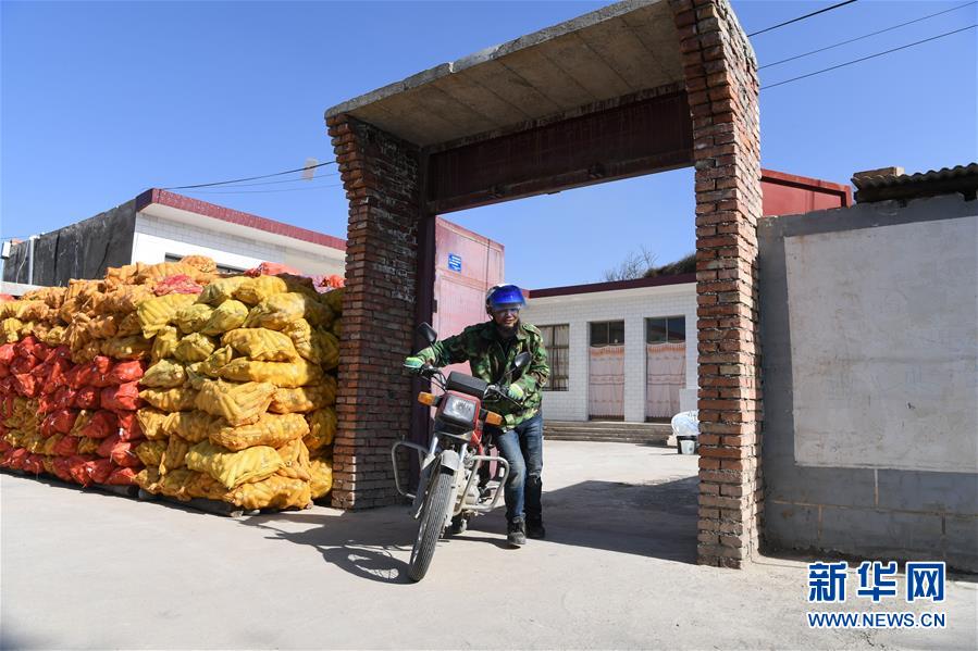 11月15日,广河县齐家镇魏家咀村村民推车走出家门准备出行,村里的水泥路直接通到各家门口。新华社记者 马宁 摄