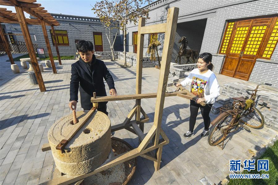 11月15日,游客在红色旅游景区体验农耕项目。 河北省安平县依托丰富的革命历史资源推出“历史足迹红色游”,打造红色旅游景区,内容包括冀中印象风情街、红色革命小路、红色旧址复建环线等。近日,景区正式对外开放,吸引游客慕名前来。 新华社记者 李晓果摄