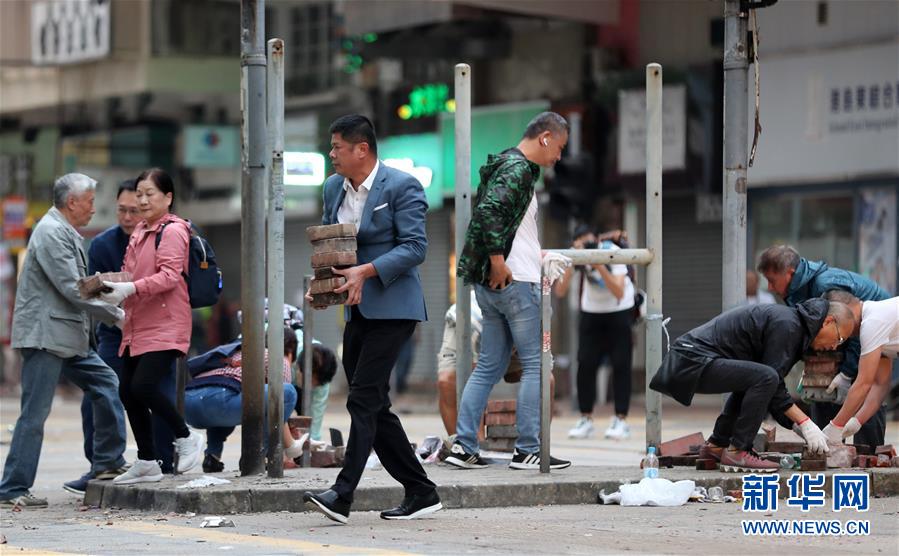 特写:“无惧暴力威胁,携手恢复秩序”——香港市民清晨自发清理路障