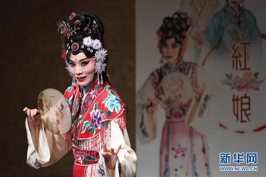 11月15日,台湾豫剧团演员谢文琪在彩排记者会上演出豫剧《红娘》片段。 新华社记者 陈斌 摄