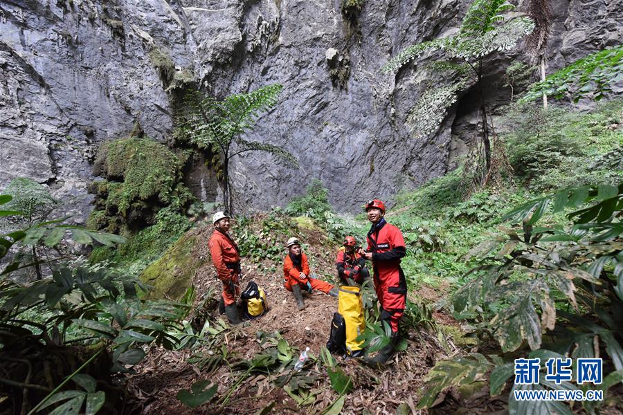 11月2日,探险队在坑底岩屋下休息。 新华社发(中国地质调查局岩溶地质研究所 供图)