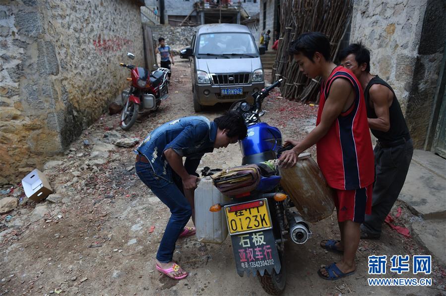 在广西大化瑶族自治县板升乡弄勇村弄朝屯,村民到邻村运水饮用(2015年2月28日摄)。如今,弄朝屯几乎家家户户都修建了家庭水柜。 新华社记者 黄孝邦 摄