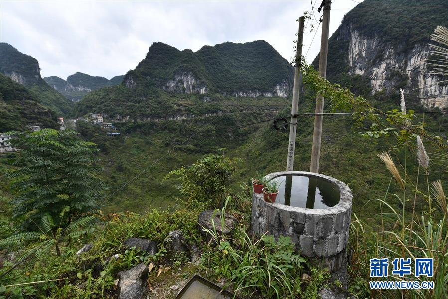 在广西大化瑶族自治县七百弄乡古竹村,村民在悬崖边修建的微型水柜(11月13日摄)。 新华社记者 黄孝邦 摄