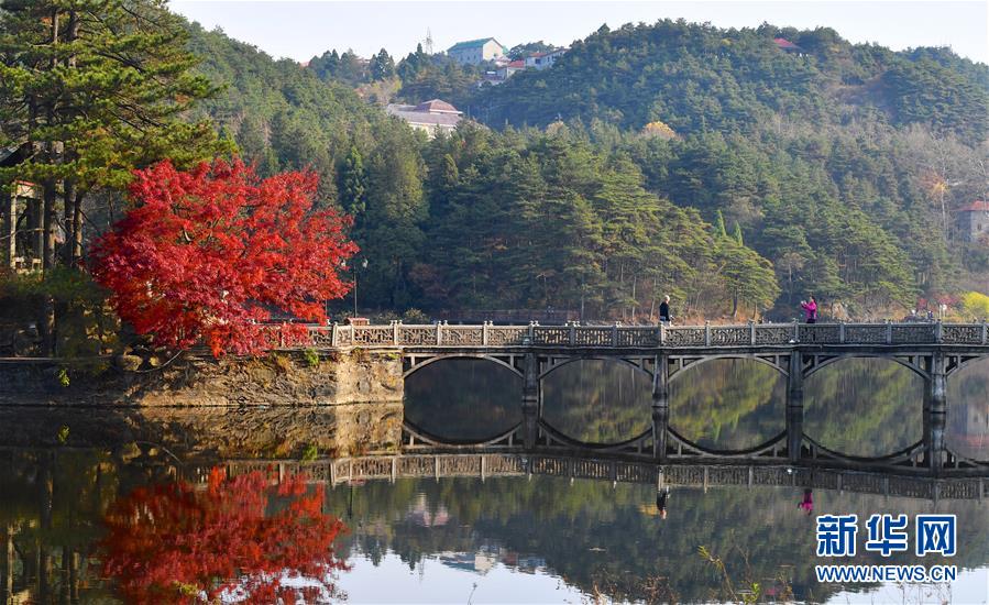 这是11月17日拍摄的庐山如琴湖。 初冬时节,江西庐山风景区层林尽染,火红的枫叶吸引众多游客前来参观,令人流连忘返。 新华社记者 张浩波 摄