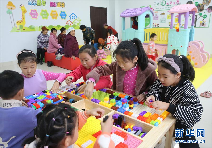 11月17日,山东省滨州市沾化区富源街道大卢王社区孩子们在新时代文明实践分中心娱乐活动室一起游戏。 新华社记者范长国摄