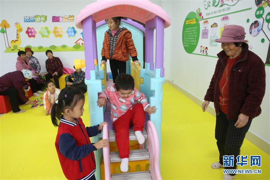 11月17日,山东省滨州市沾化区富源街道社区居民和孩子们在新时代文明实践分中心娱乐活动室一起游戏。 新华社记者范长国摄