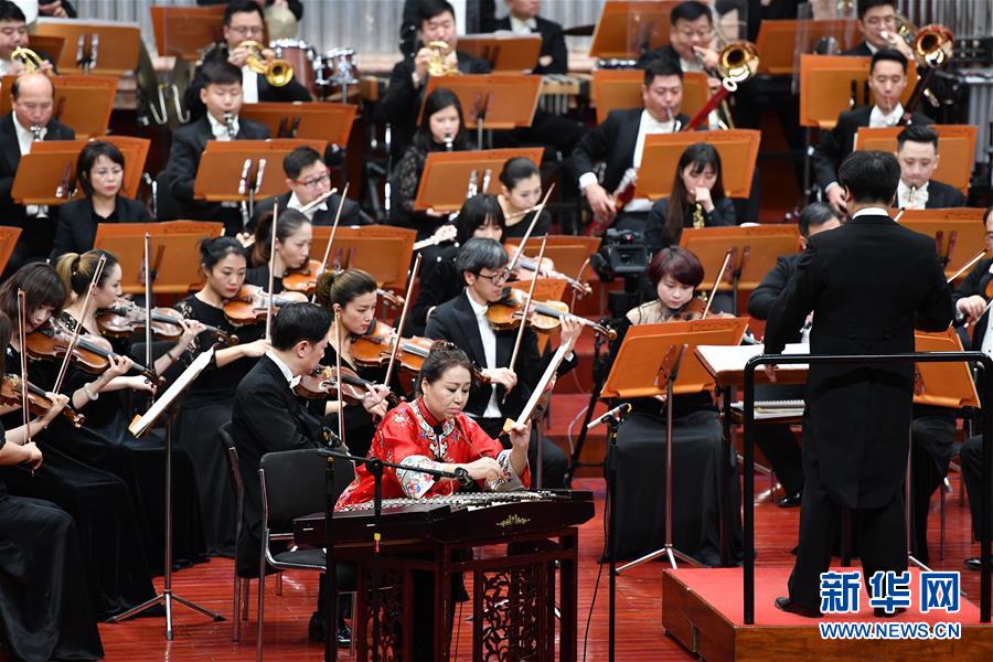 11月17日,天津交响乐团和扬琴演奏家瞿建青合作曲目《凤点头》。 当日,“庆祝中华人民共和国成立70周年——中国交响乐作品展演”天津音乐会在天津音乐厅隆重上演。 新华社记者 李然 摄