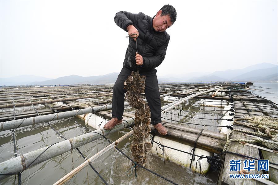 宁德福安市溪邳村村民在查看海上养殖的牡蛎(3月7日摄)。新华社记者 姜克红 摄