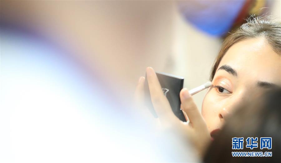 11月17日,玛依拉在演出前化妆。 新华社记者 卢烨 摄
