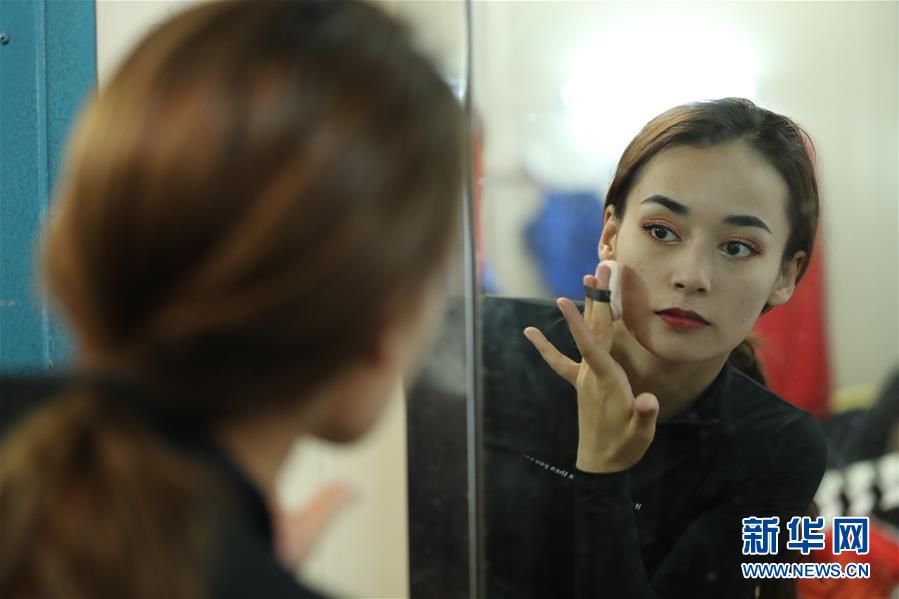 11月17日,玛依拉在演出前化妆。 新华社记者 卢烨 摄