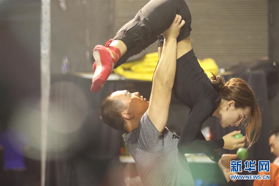11月17日,玛依拉在演出前与丈夫谭木一起热身。 新华社记者 卢烨 摄
