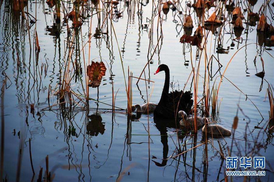 这是11月18日拍摄的济西国家湿地里的天鹅。 新华社记者 王凯 摄