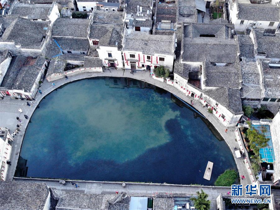这是11月15日无人机拍摄的安徽黟县宏村月沼。新华社发(黄博涵摄)