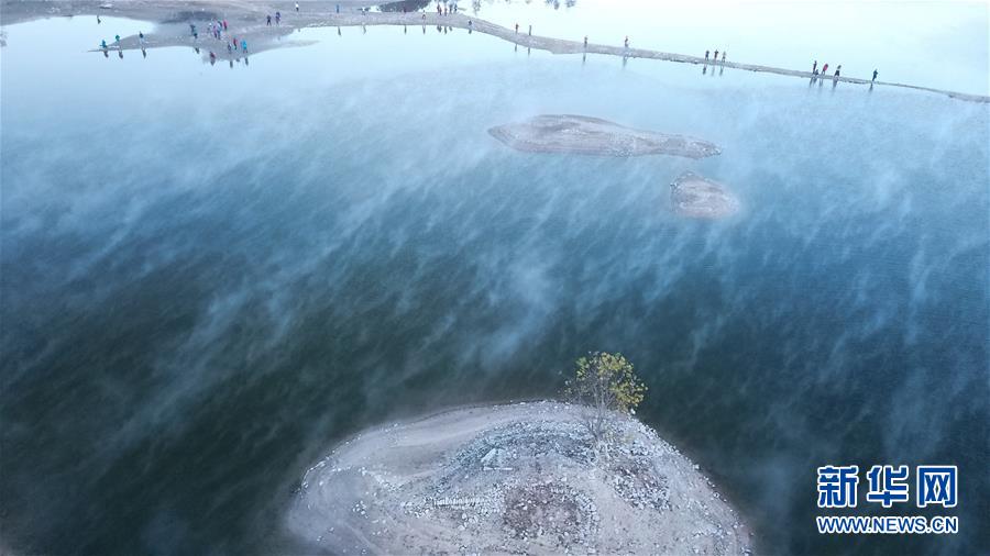 这是11月14日无人机拍摄的安徽黟县奇墅湖晨景。新华社记者 张端 摄
