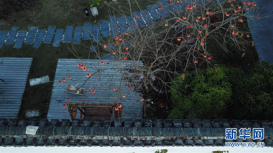 这是11月15日无人机拍摄的安徽黟县宏村一家民宿的院落。新华社记者 张端 摄