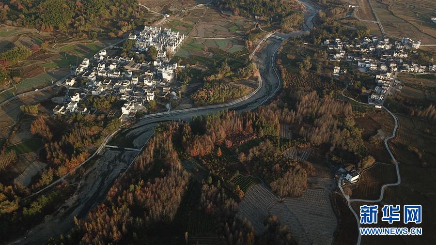 这是11月15日无人机拍摄的安徽黟县宏村风景区附近的村落。新华社记者 张端 摄