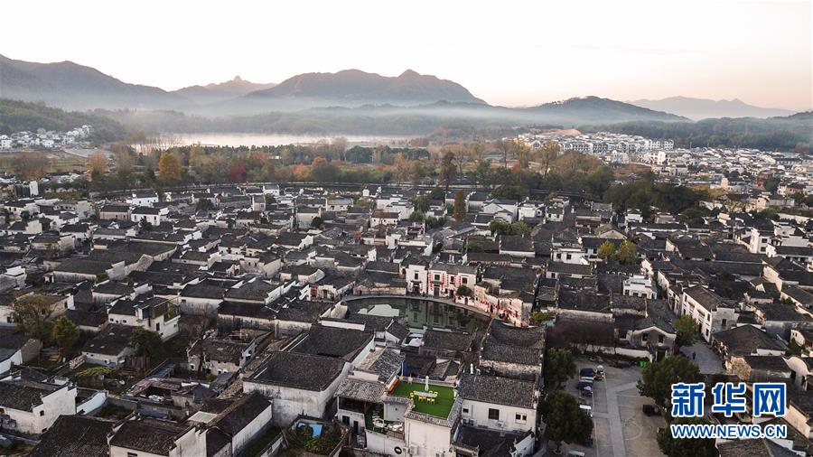 这是11月15日无人机拍摄的安徽黟县宏村晨景。新华社记者 张笑宇 摄
