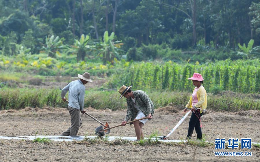 11月19日,在海南省澄迈县永发镇加善村,菜农在菜田里劳作。新华社记者 杨冠宇 摄