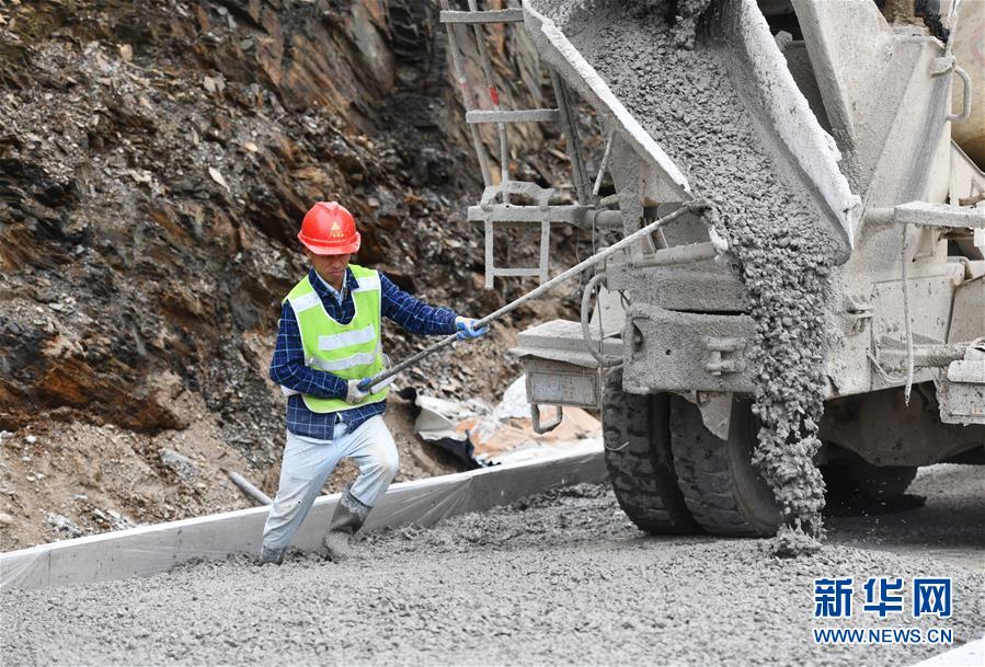 11月19日,在广西融水苗族自治县四荣乡,工人在罗融二级公路建设现场施工。 新华社记者 黄孝邦 摄