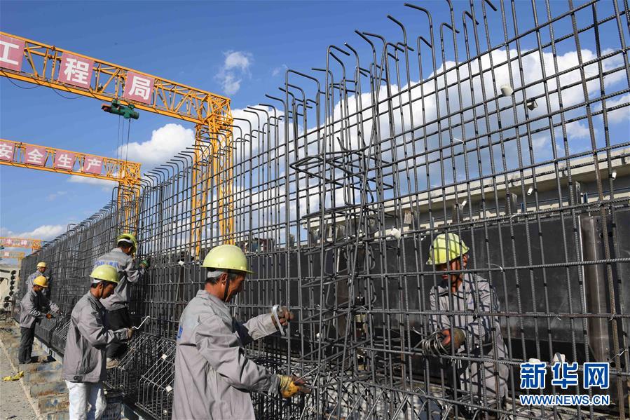 11月19日,施工人员在玉磨铁路景洪制梁场绑扎钢筋。 担负中老国际铁路通道重要组成部分玉(溪)磨(憨)铁路景洪制梁场施工任务的中铁上海局集团六公司,在保证安全和质量的前提下,加紧生产铁路桥梁,目前施工进展顺利。玉磨铁路是泛亚铁路中线昆明至曼谷的重要组成部分,正线全长500多公里,设计速度为每小时160公里。 新华社记者 杨宗友 摄