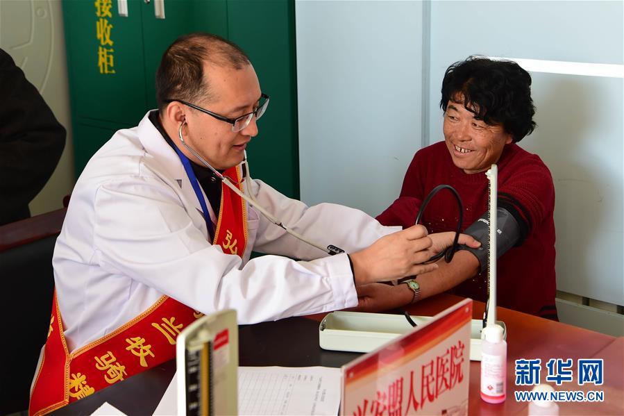 11月20日,兴安盟人民医院的医生为俄体镇齐心村群众义诊。 新华社发(贝赫 摄)
