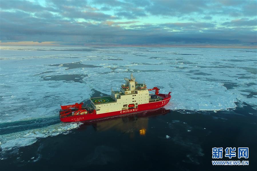 航行在南极圈内浮冰区的“雪龙2”号(11月19日无人机拍摄)。 新华社记者 刘诗平 摄