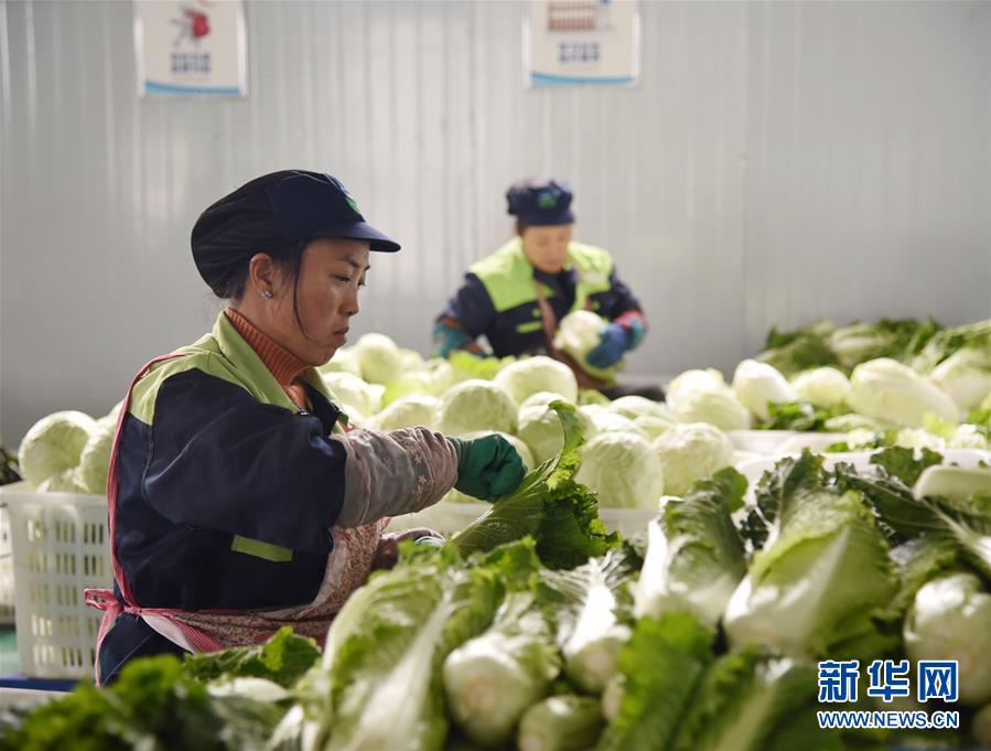 在贵州省遵义市播州区三合镇三社融合发展专业合作社蔬菜配送中心,务工村民在分选蔬菜(11月10日摄)。新华社记者 骆飞 摄
